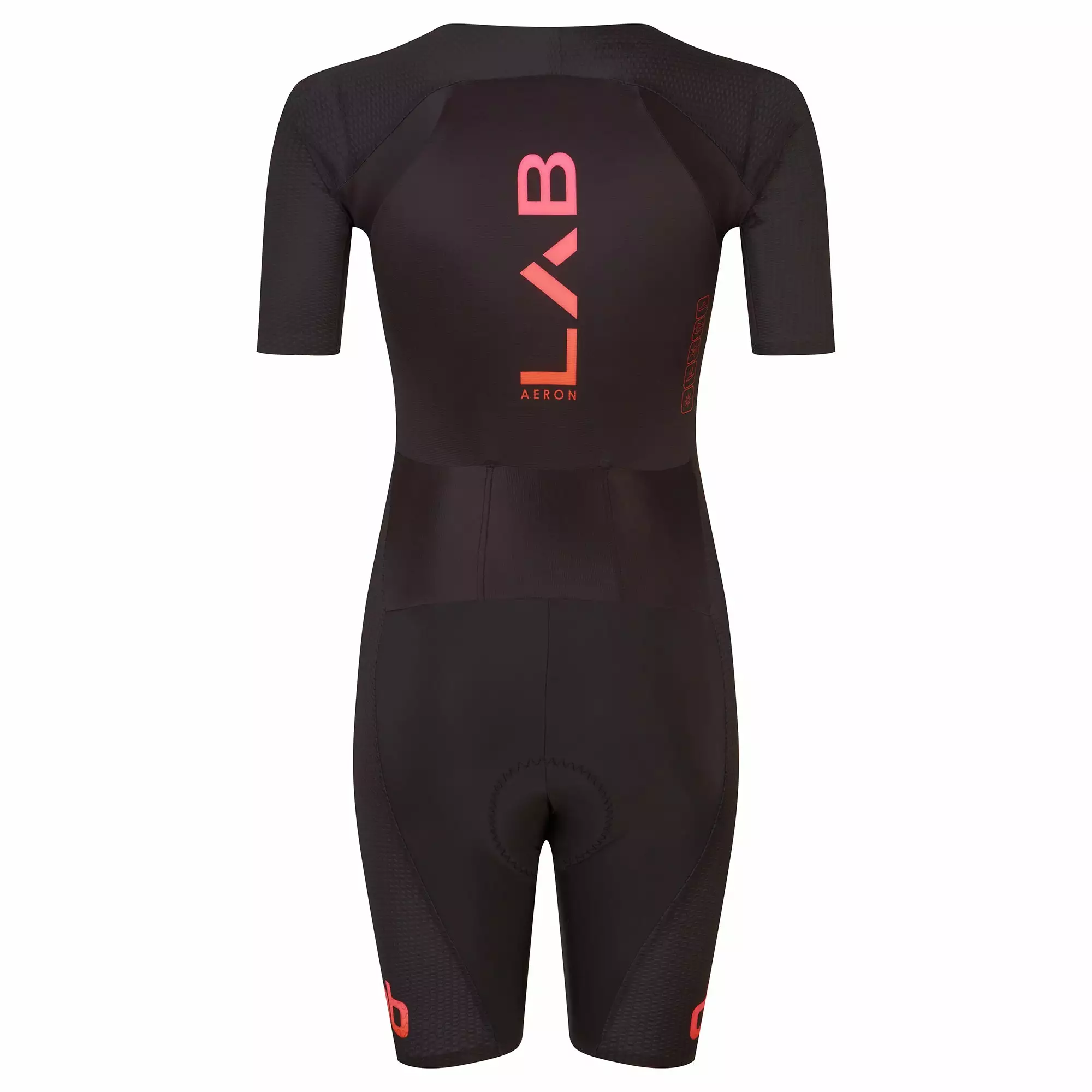 - Ergonomically designed for more aero-disruptive coverage on the upper-back seams and side legs